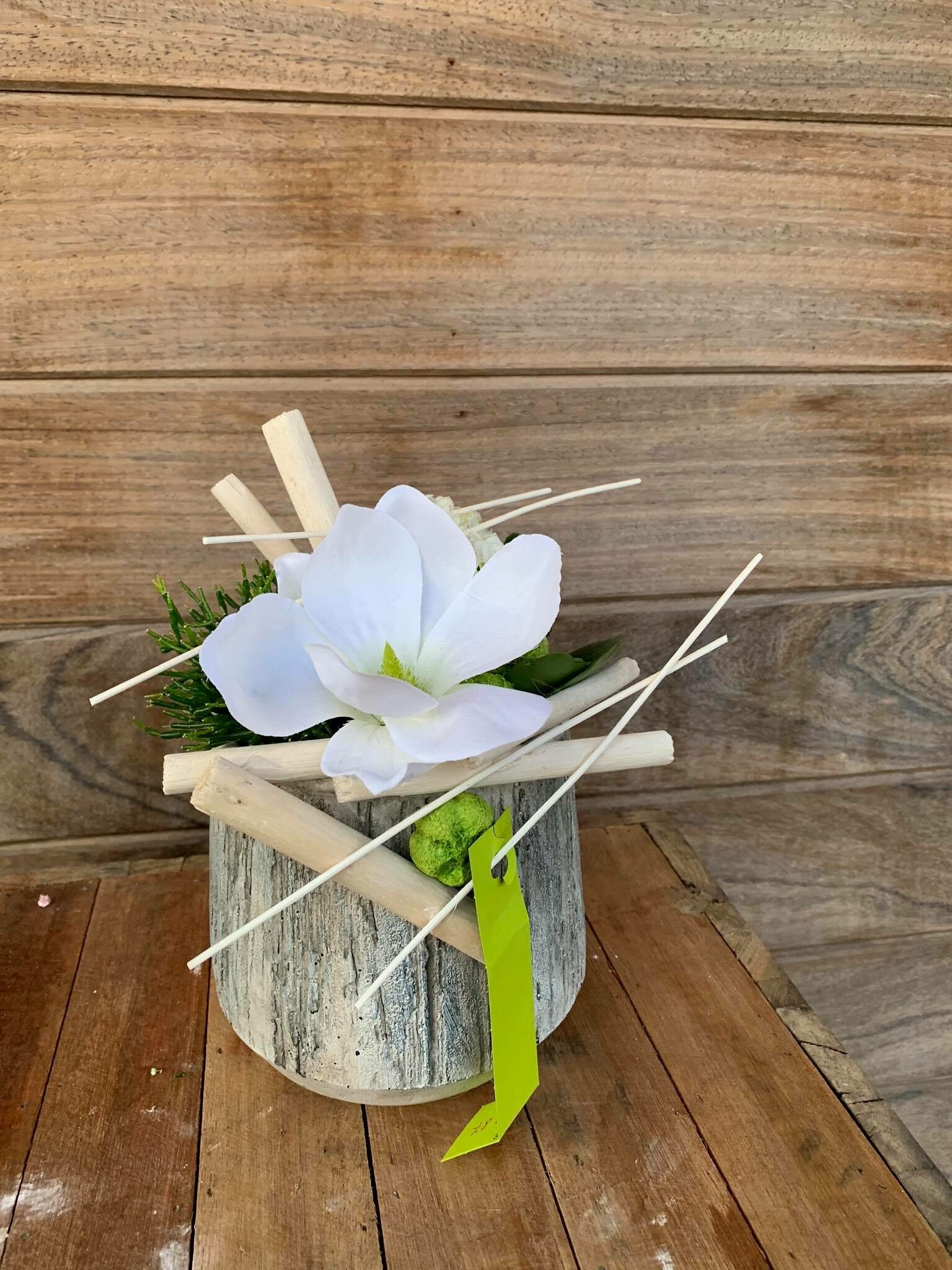 vaste coupe met witte bloem erin
