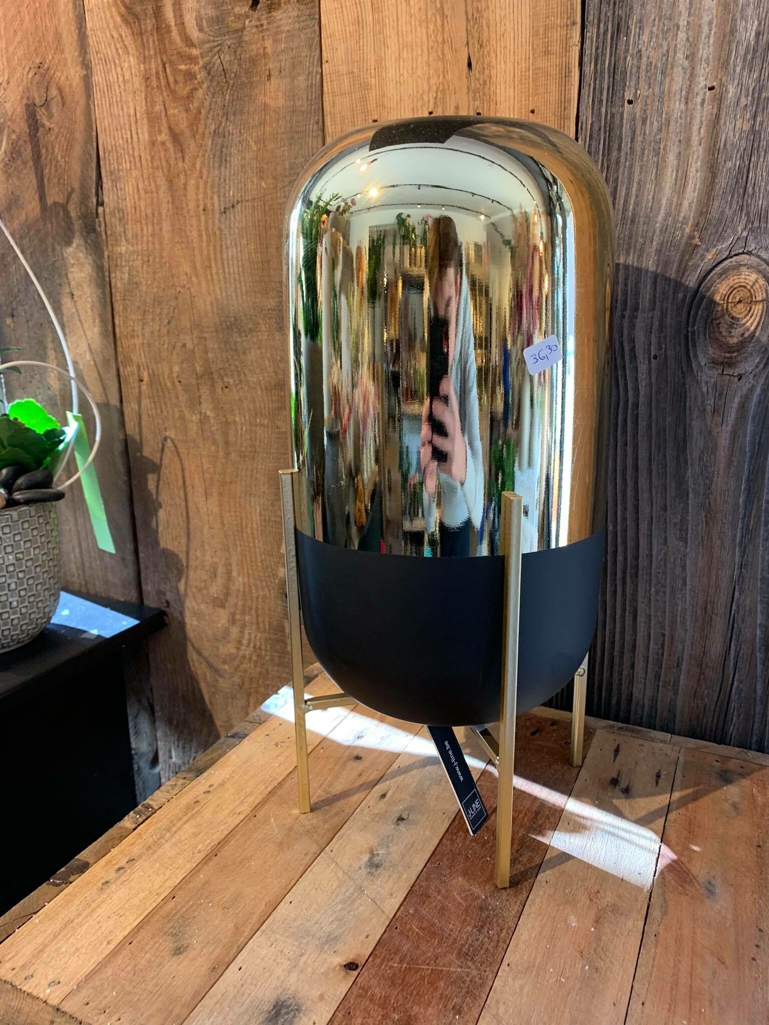 windlicht in goud op staande voet groot
